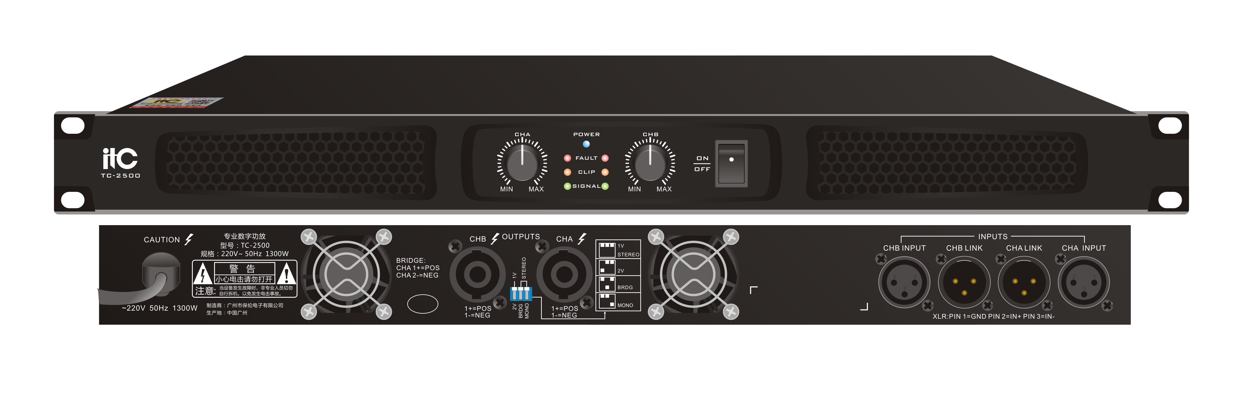 TC-2500 2-канальный профессиональный усилитель, стерео 8 Ом: 2*500 Вт; 4 Ом: 2*800 Вт; 2 Ом: 2*1300 Вт; мост 16 Ом: 1000 Вт; 8 Ом: 1600 Вт; 4 Ом: 2600 Вт